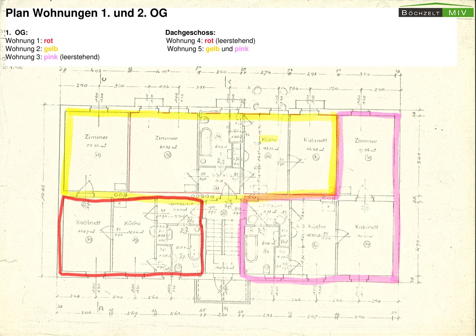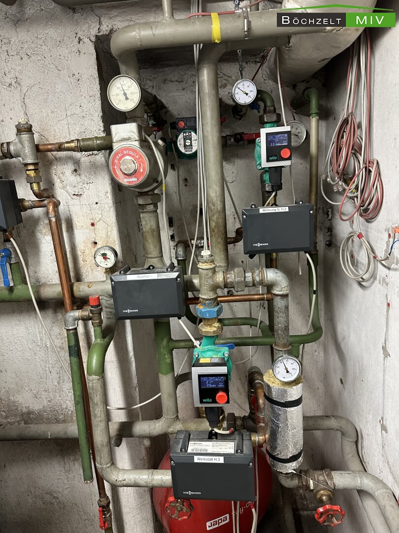 Der Zustand des Objektes als solches ist als gut zu bezeichnen. Vor ca. 4 Jahren wurde Fernwärme in das Haus eingeleitet, die alte Gasleitung besteht noch im Keller und auch alte Öl-Tanks sind weiterhin vorhanden, um theoretisch jederzeit umrüsten zu können und ein gewisses Maß an Unabhängigkeit zu schaffen. Die kleinen Wohnungen (lt. Grundriss jeweils rot) werden elektrisch beheizt. Das Dach des Haupthauses samt Dachstuhl wurde vor ca. 15 Jahren erneuert. Die Fenster sind ca. 25 Jahre alt. Ansonsten wurde die Liegenschaft laufend instandgehalten. Um höhere Mieterlöse aus den leerstehenden Wohnungen zu erzielen, würden sich geringfügige kosmetische Adaptierungen anbieten. Die Fahr- und Rangierflächen sind allesamt asphaltiert. Neben den überdachten Stellplätzen bietet sich genügend Platz für Freistellplätze für Mieter, Mitarbeiter oder Kunden.