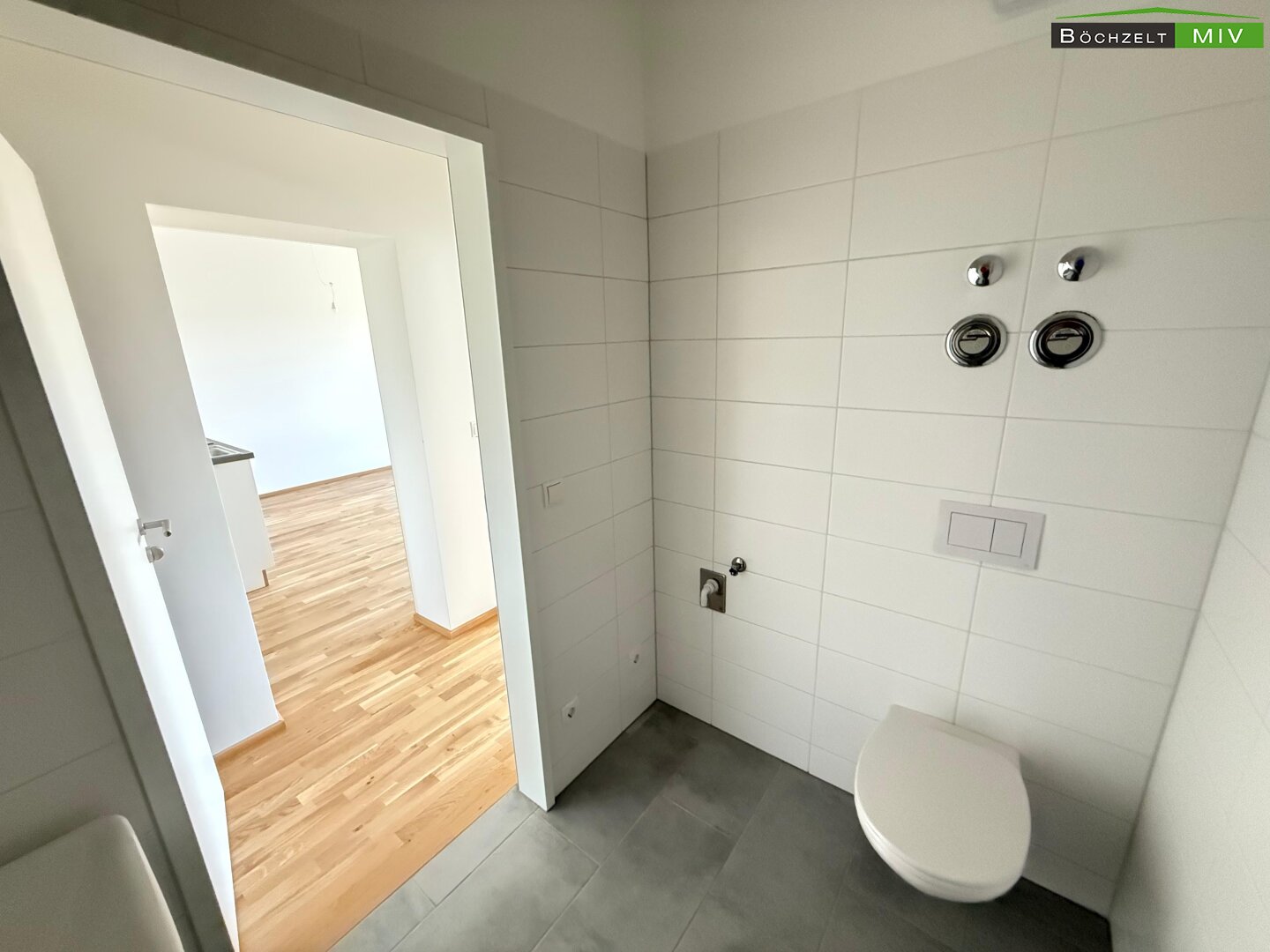 Die Raumaufteilung der Top 2, 5, 8 lautet wie folgt: Vorraum, möblierte Küche mit Wohnbereich, Schlafzimmer, Badezimmer mit WC.