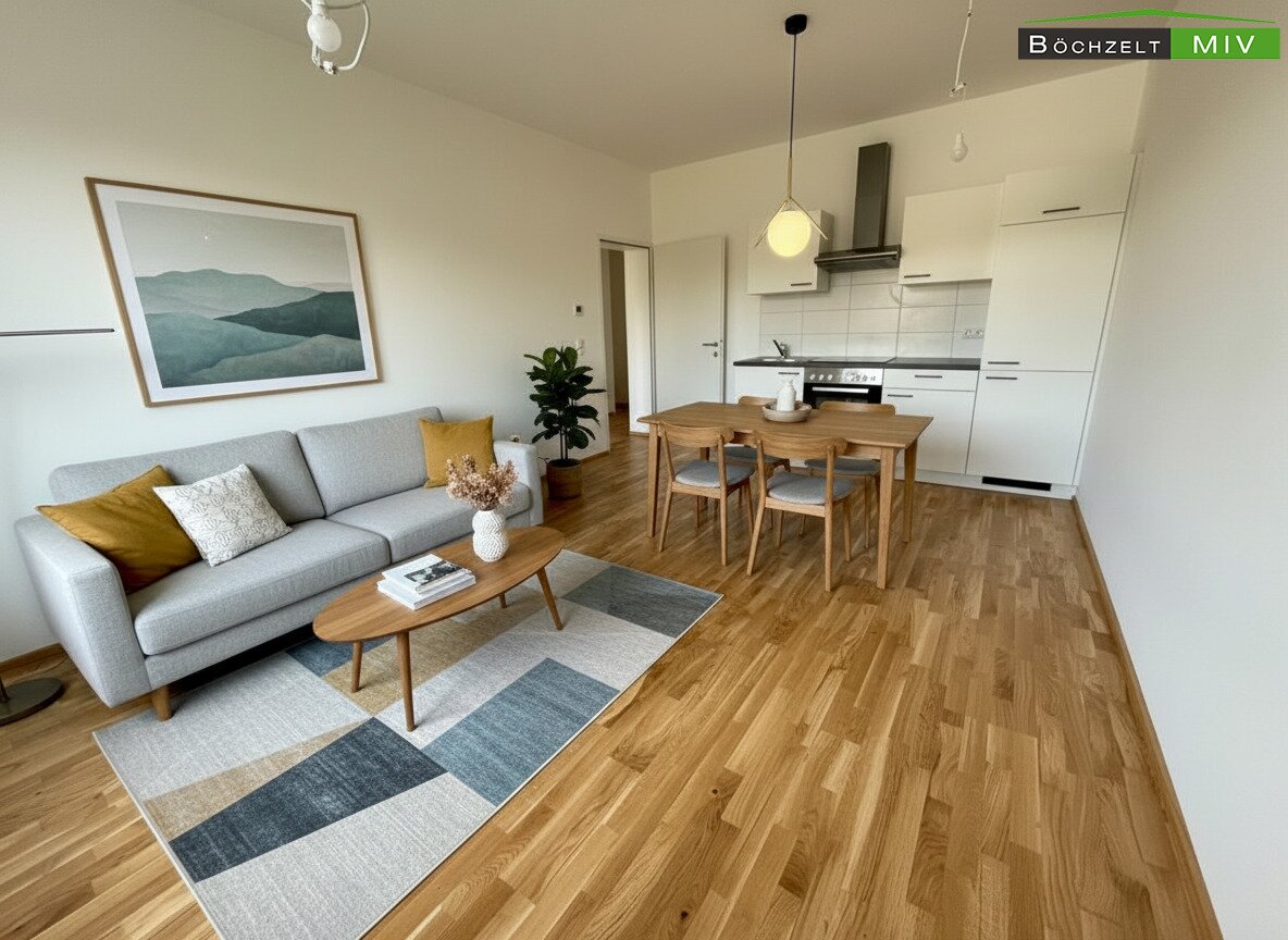 Bitte beachten Sie: Die dargestellte Möblierung wurde mittels KI generiert und ist nicht Bestandteil des Objektes!