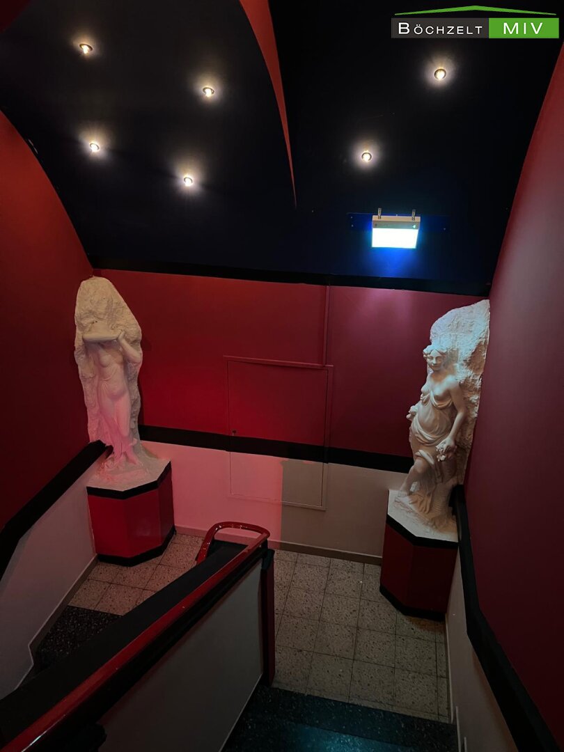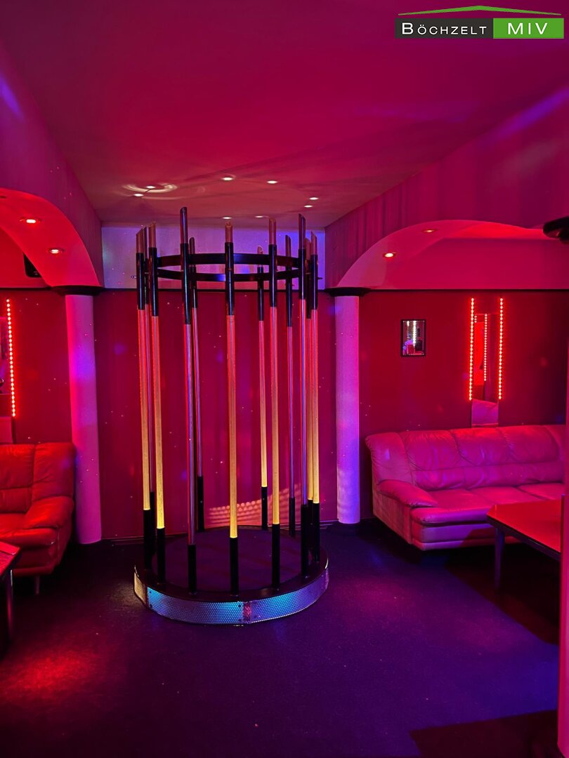 Das Gebäude als solches ist derzeit vollverpachtet. Im Erdgeschoss wird aktuell ein Kartenhandel (Spielkarten samt Tauschevents) betrieben. Das Keller-, sowie Obergeschoss wird als Laufhaus bzw. Bortell genutzt und verfügen über einen eigenen Eingang. Im Kellergeschoss befinden sich neben diversen Lagerräumlichkeiten auch die Heiz- und Tankräume, sowie ein Aufenthaltsraum, ein größerer Raum, der früher als Tanzfläche genutzt wurde und 3 Zimmer. Im Erdgeschoss befinden sich nebem dem großen Gastraum noch WC-Anlagen, ein Abstellraum, der Lüftungsraum, sowie eine Küche. Im Obergeschoss findest sich ein großer Barraum, sowie ein Zimmer mit Dusche und Badewanne/Whirlpool wieder.