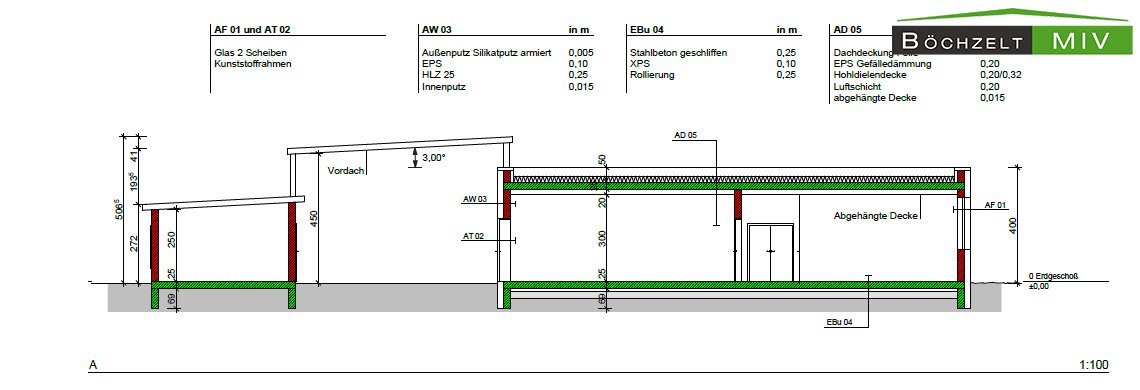 - Massiver Gewerbebau (25er Ziegel + 10 cm VWS)