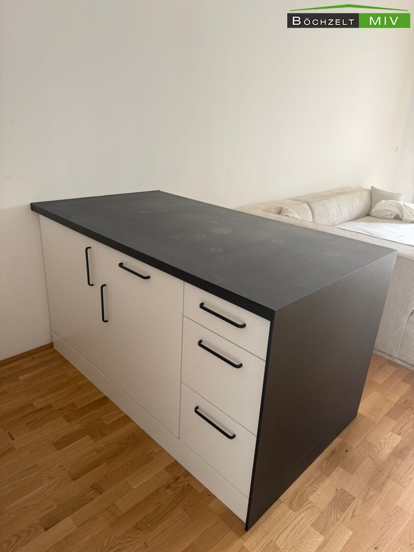 Gegen eine Ablöse von € 500 wurden folgende Gegenstände in der Wohnung bleiben: Kücheninsel (ohne Sessel) und Badezimmermöbel.
