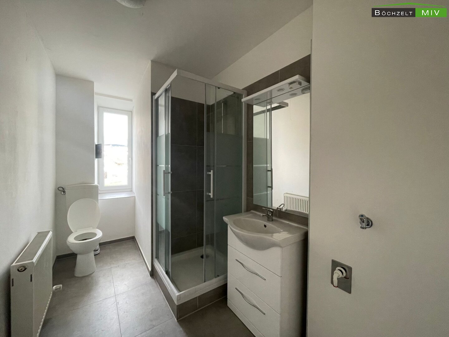 Die Mietwohnung teilt sich wie folgt auf: Vorraum, möblierte Küche mit Wohn-/Ess-/Schlafzimmer, Badezimmer mit Fenster, Dusche und WC.