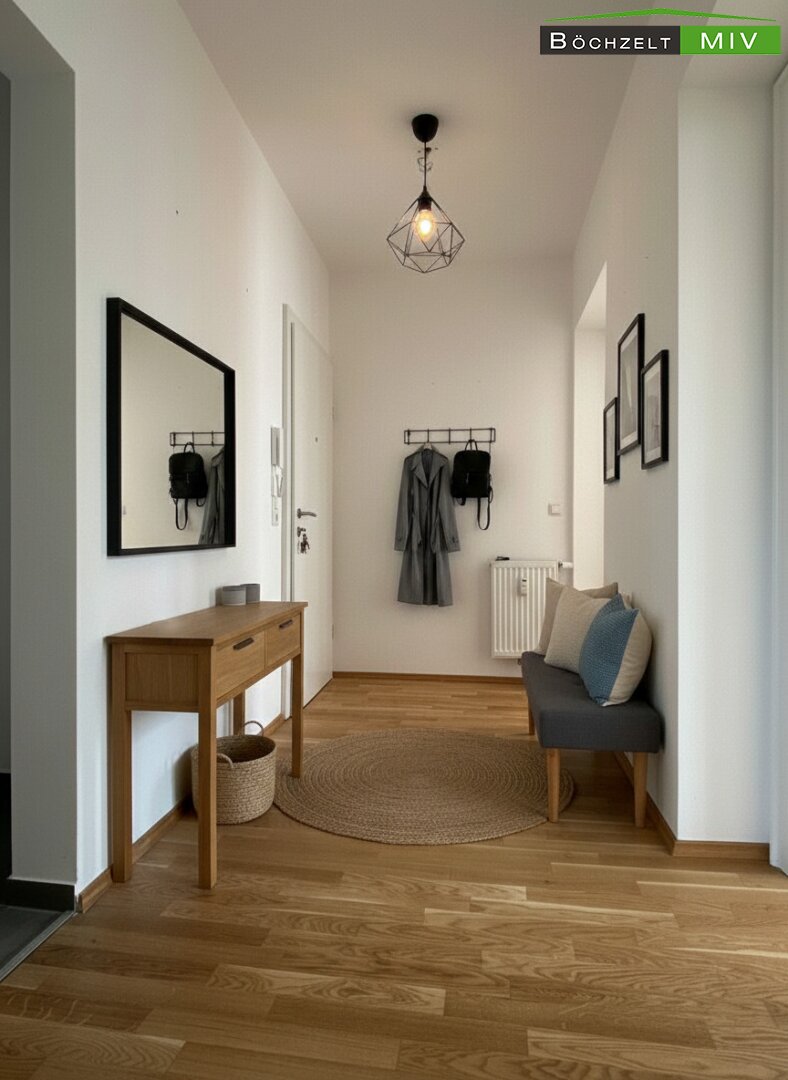 Bitte beachten Sie: Die dargestellte Möblierung wurde mittels KI generiert und ist nicht Bestandteil des Objektes!