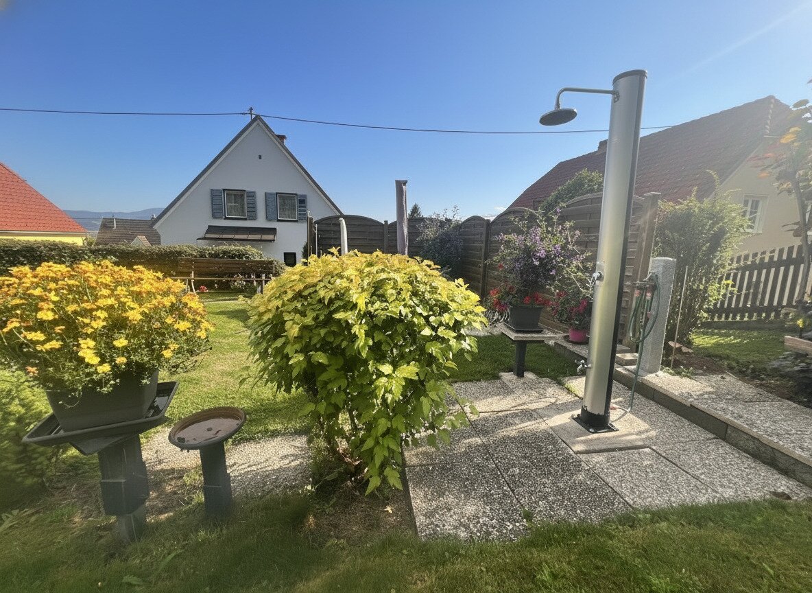 Großzügiger Garten mit Gartenhäuschen, Terrasse und Solardusche