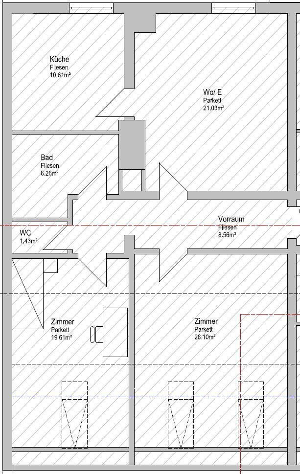 Diese helle und großzügig geschnittene Wohnung bietet alles, was das tägliche Leben komfortabel macht. Die möblierte Küche ist bereits vollständig ausgestattet und lädt zum Kochen und Genießen ein. Das Badezimmer verfügt über eine Badewanne – ideal für entspannte Abende oder das schnelle Bad der Kinder.