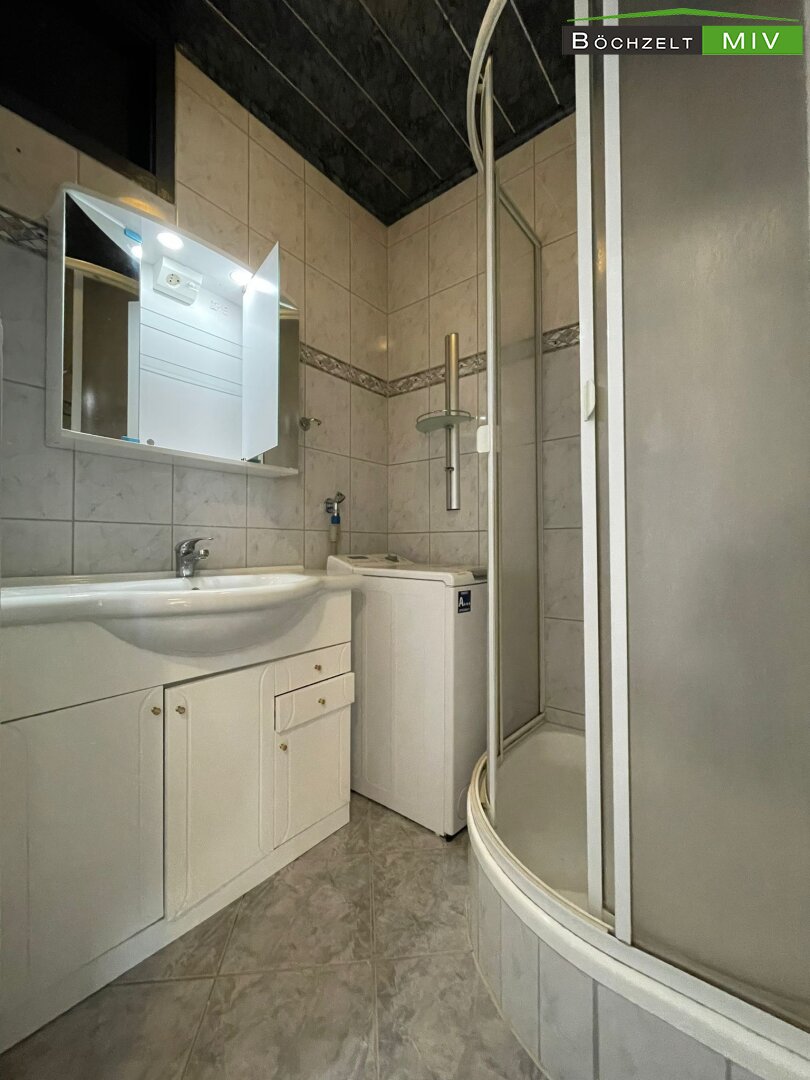 Raumaufteilung: Vorraum, möblierte Küche, Wohnzimmer, Schlafzimmer, Badezimmer mit Dusche und ein separates WC.