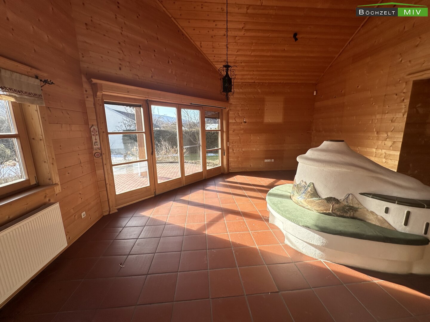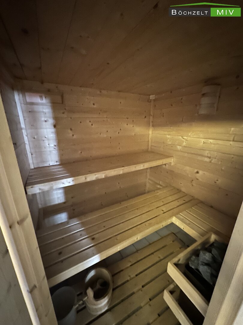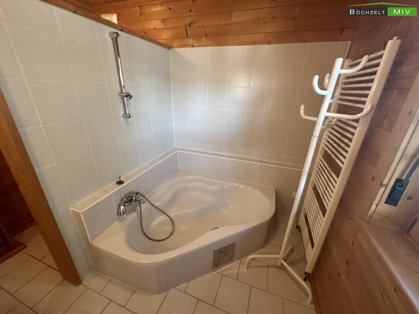 Auch die Ausstattung lässt keine Wünsche offen: Die eingebaute Alarmanlage bietet Sicherheit für Sie und Ihre Familie. Im Keller gibt es neben WC- und Duschanlage auch eine Sauna, die zum Entspannen einlädt. Überdies verfügt dieses Objekt über eine zentrale Staubsaugeranlage. Das Büro bzw. Kinderzimmer lässt eine Beheizung über den Festbrennstoffofen zu, generell wird mittels Gaszentralheizung geheizt. Die Holzfenster verfügen über außenliegeden Sonnenschutz in Form von Rollläden. Zur Gartenbewässerung und zum Betrieb der WC-Anlagen kann überdies das Wasser aus dem eigenen Brunnen verwendet werden. Der gepflegte Garten weist neben einigen Bäumen auch eine Gartenhütte zur Lagerung von Geräten und Holz auf. Vom Wohnbereich erreichen Sie die (teilweise) überdachte Terrasse.