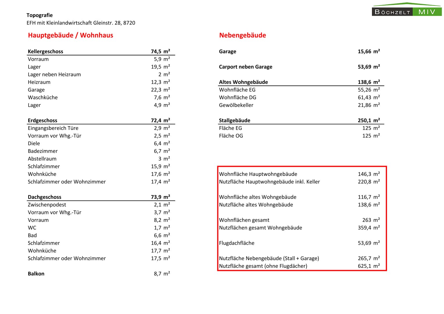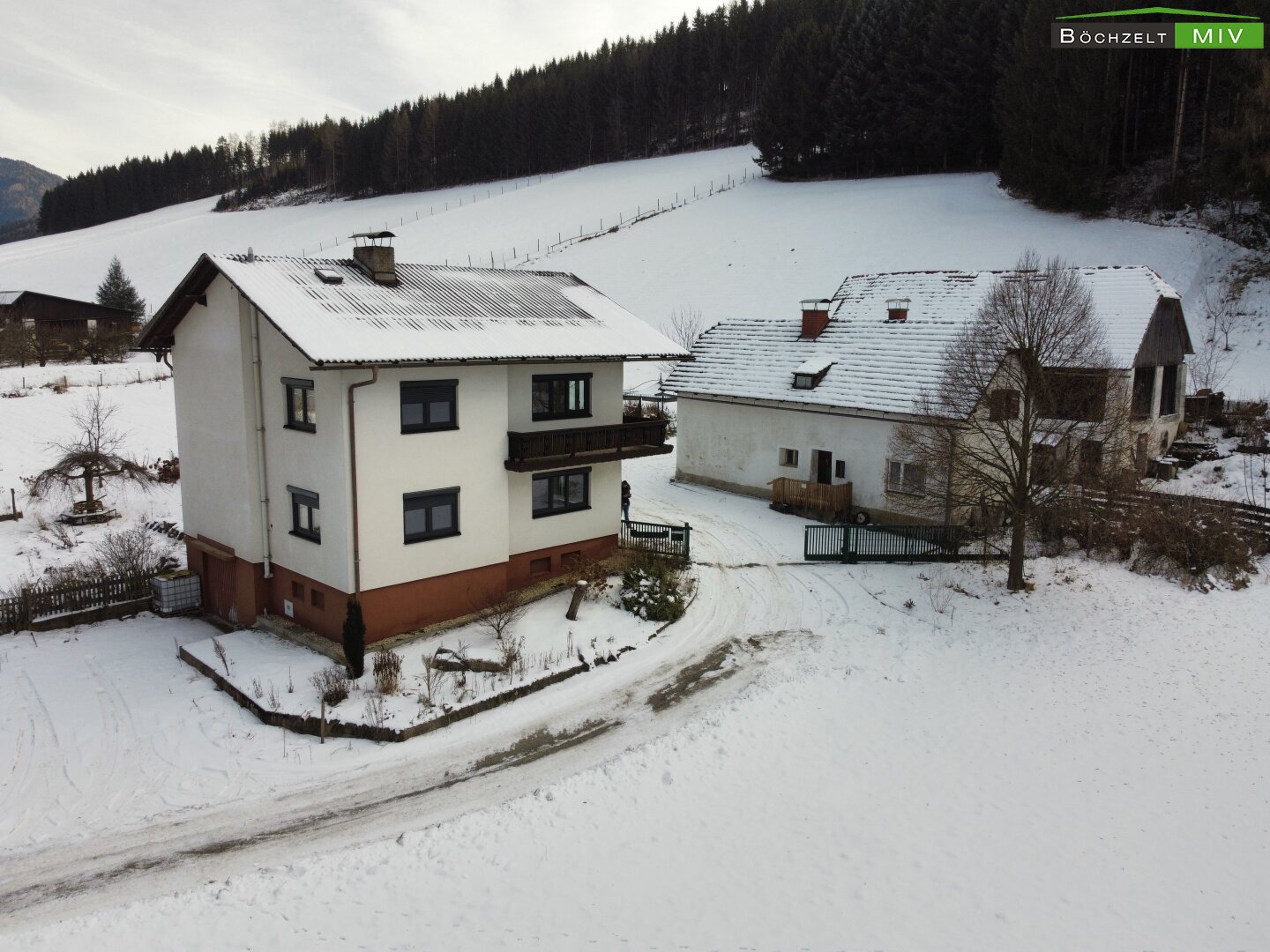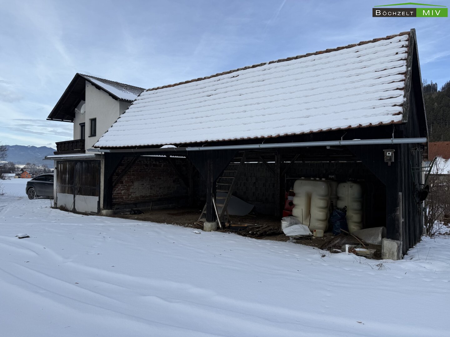Die Liegenschaft besteht grundsätzlich aus dem 1977 errichteten und 2025 sanierten Wohngebäude, einer Einzelgarage mit angeschlossenem Carport und darüberliegendem Lagerraum, dem ehemaligen Wohngebäude, sowie dem Stallgebäude samt darüberliegender Heuberge.