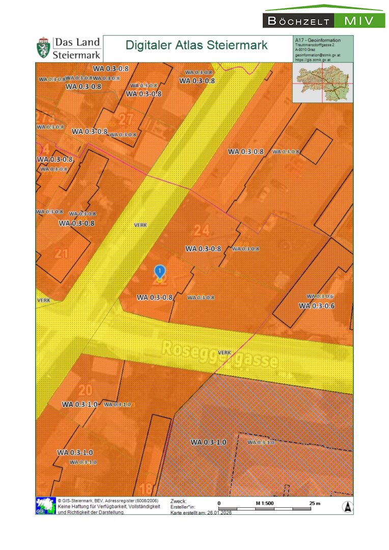 Wie erwähnt ist die Infrastruktur für eine geplante Wohnhaussanierung durch die unmittelbare Nähe zu Nahversorgern, Schulen, öffentlichen Verkehrsmitteln und dem Bahnhof als ideal anzusehen (fußläufig alles in ca. 5 Minuten erreichbar). Auch auch das Stadtzentrum Knittelfeld ist nur wenige Gehminuten entfernt.