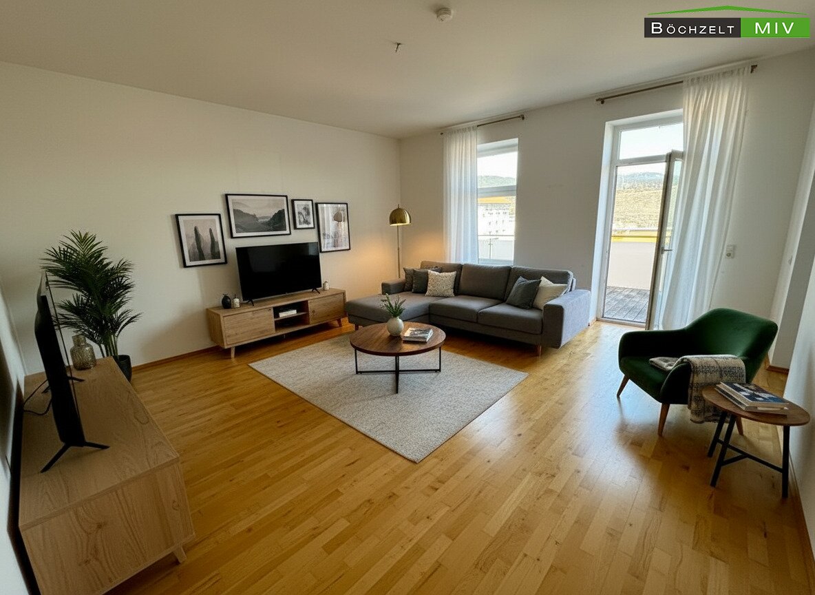 Bitte beachten Sie: Die dargestellte Möblierung wurde mittels KI generiert und ist nicht Bestandteil des Objektes!