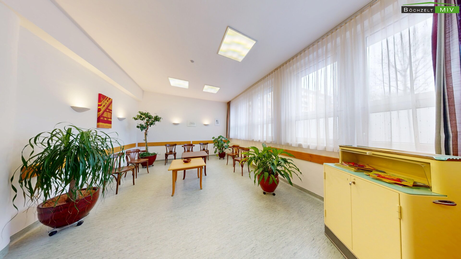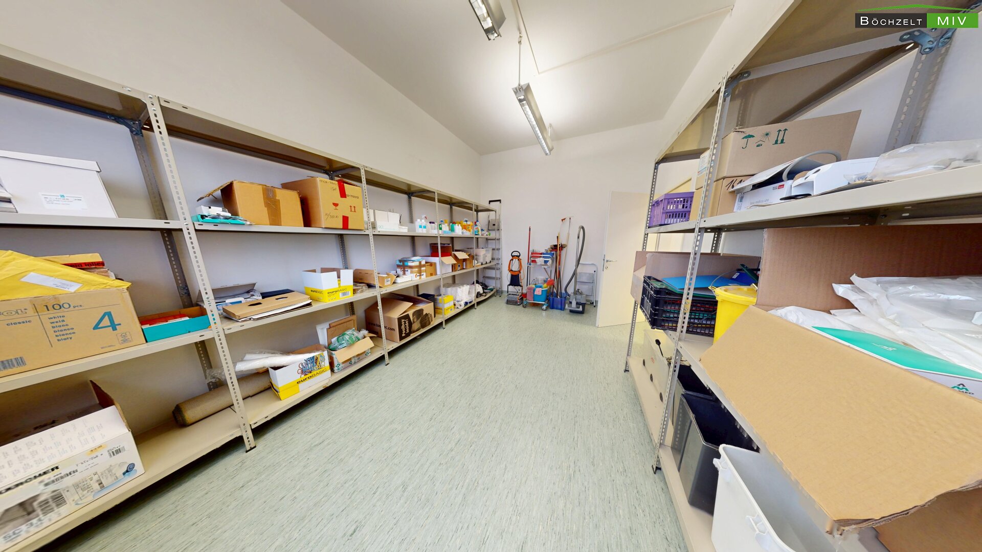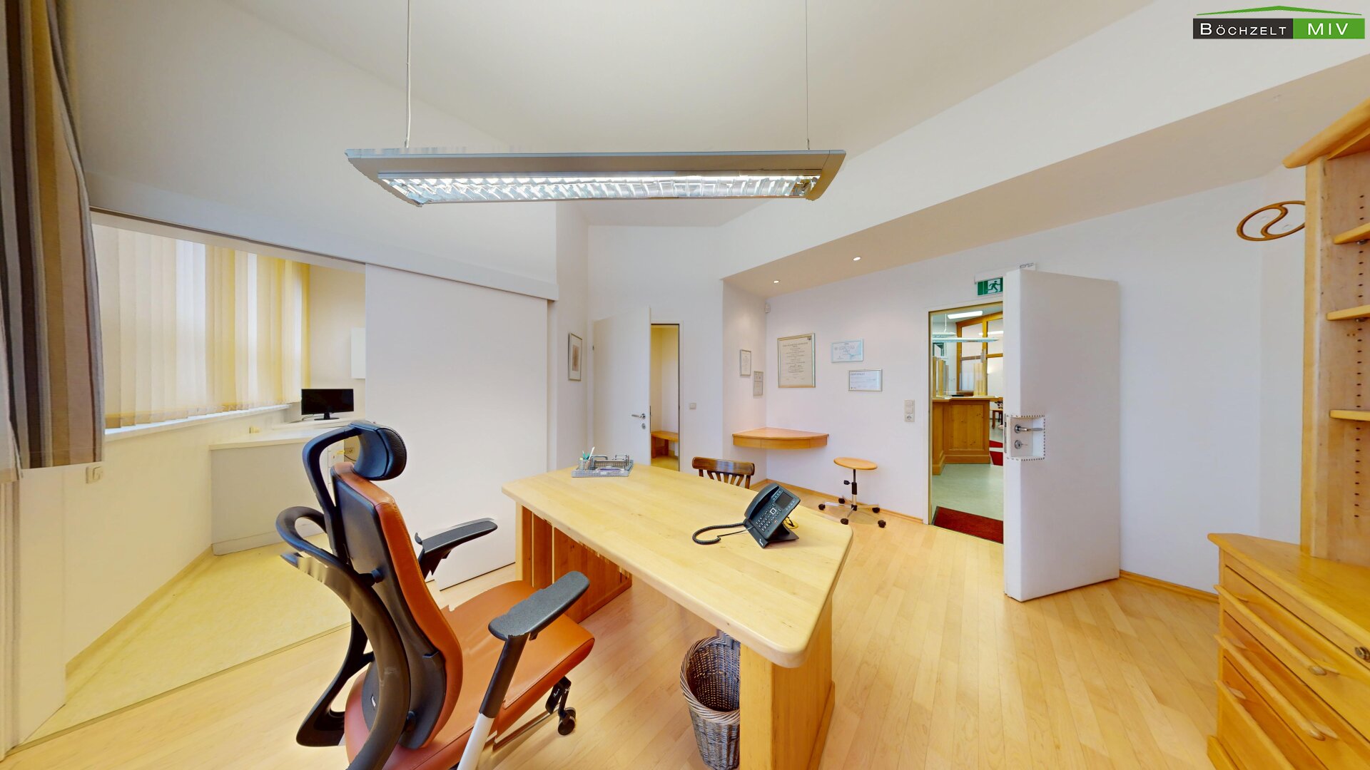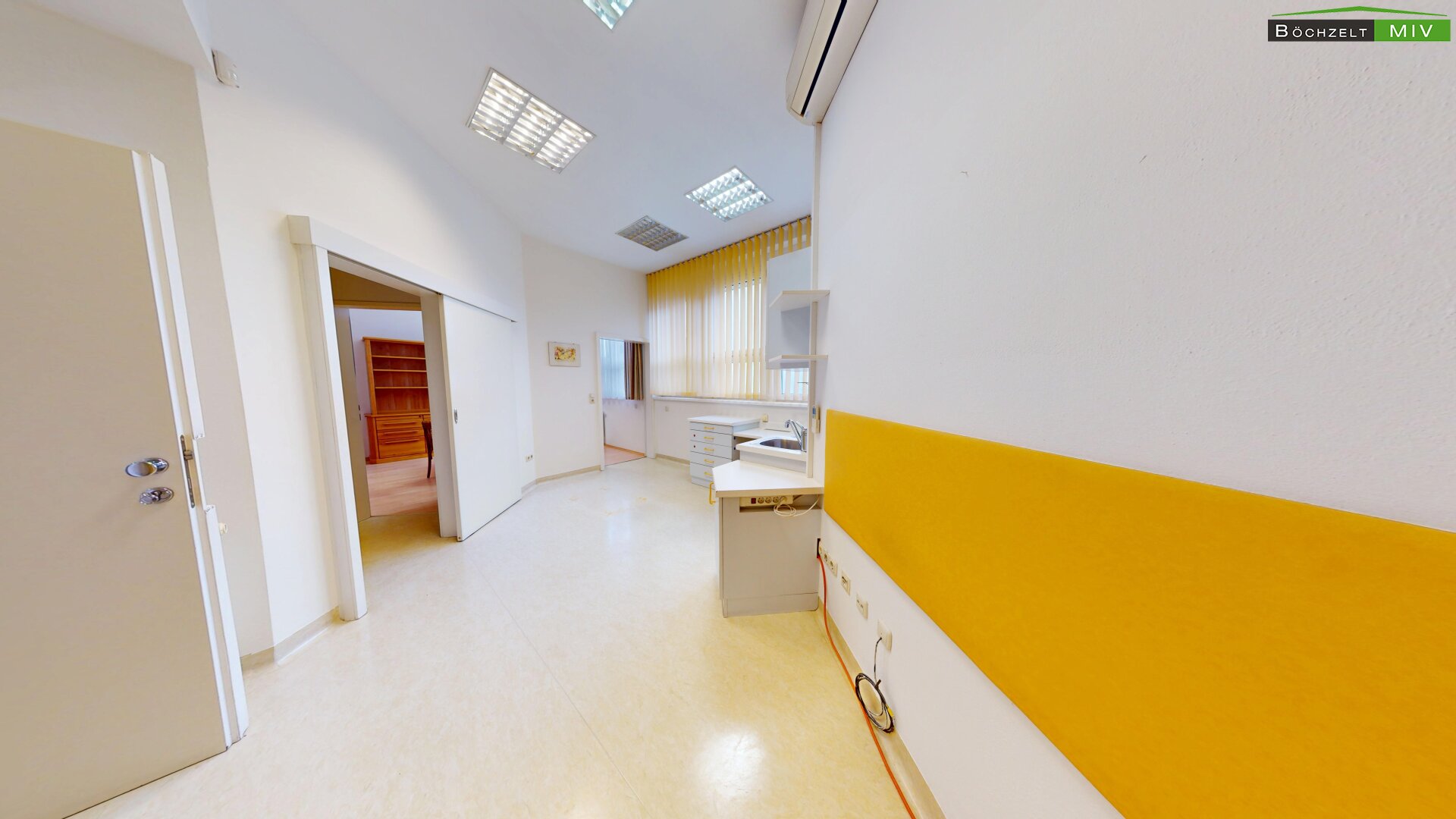 - Empfang, Wartebereich, 3 Büros, 2 WC bzw. Bad, Lagerräume und Aufenthaltsraum