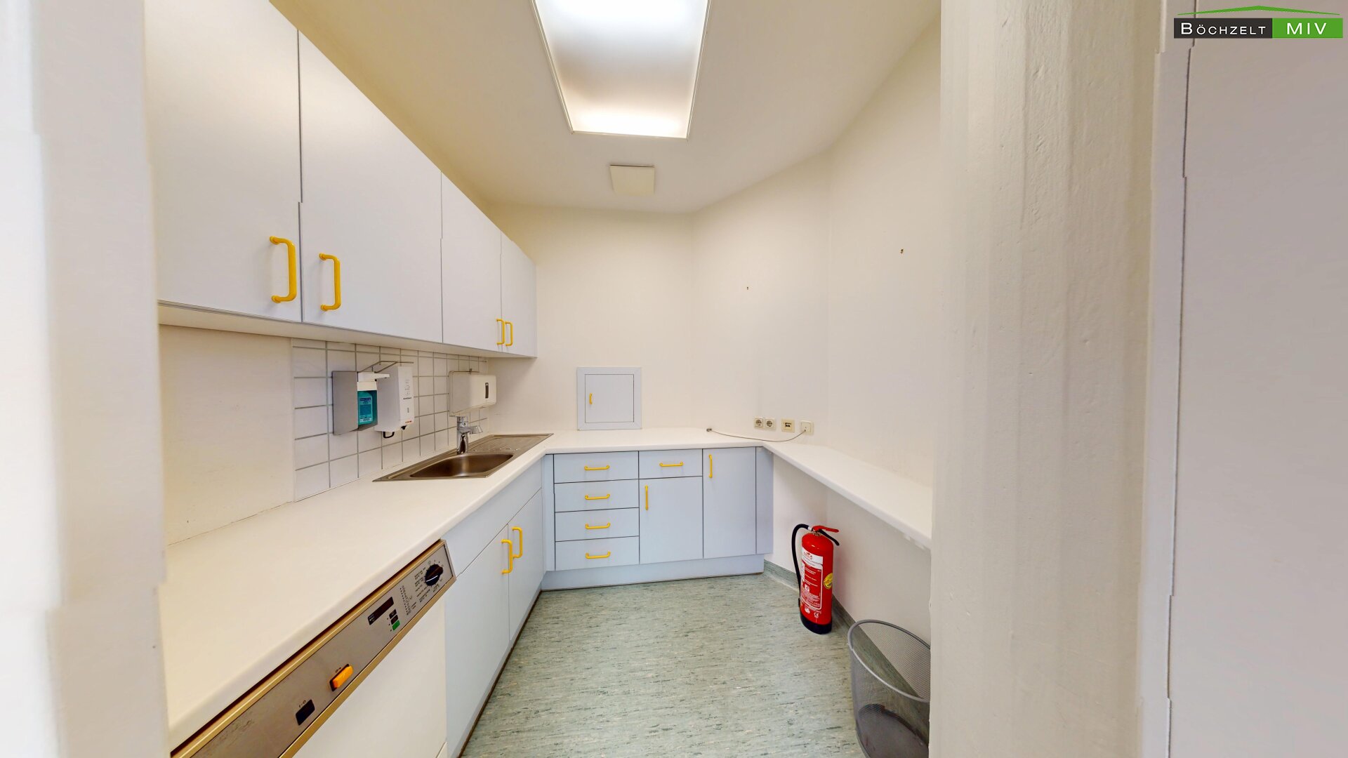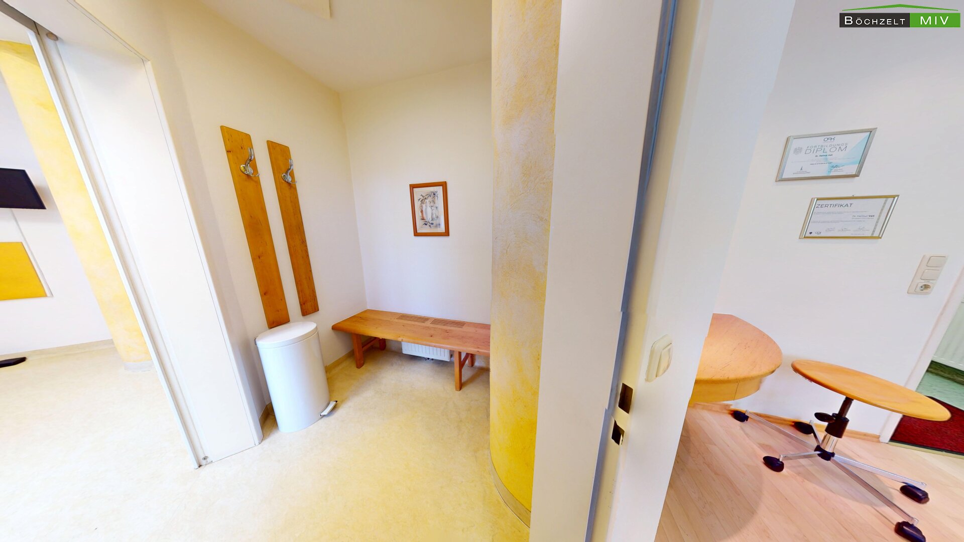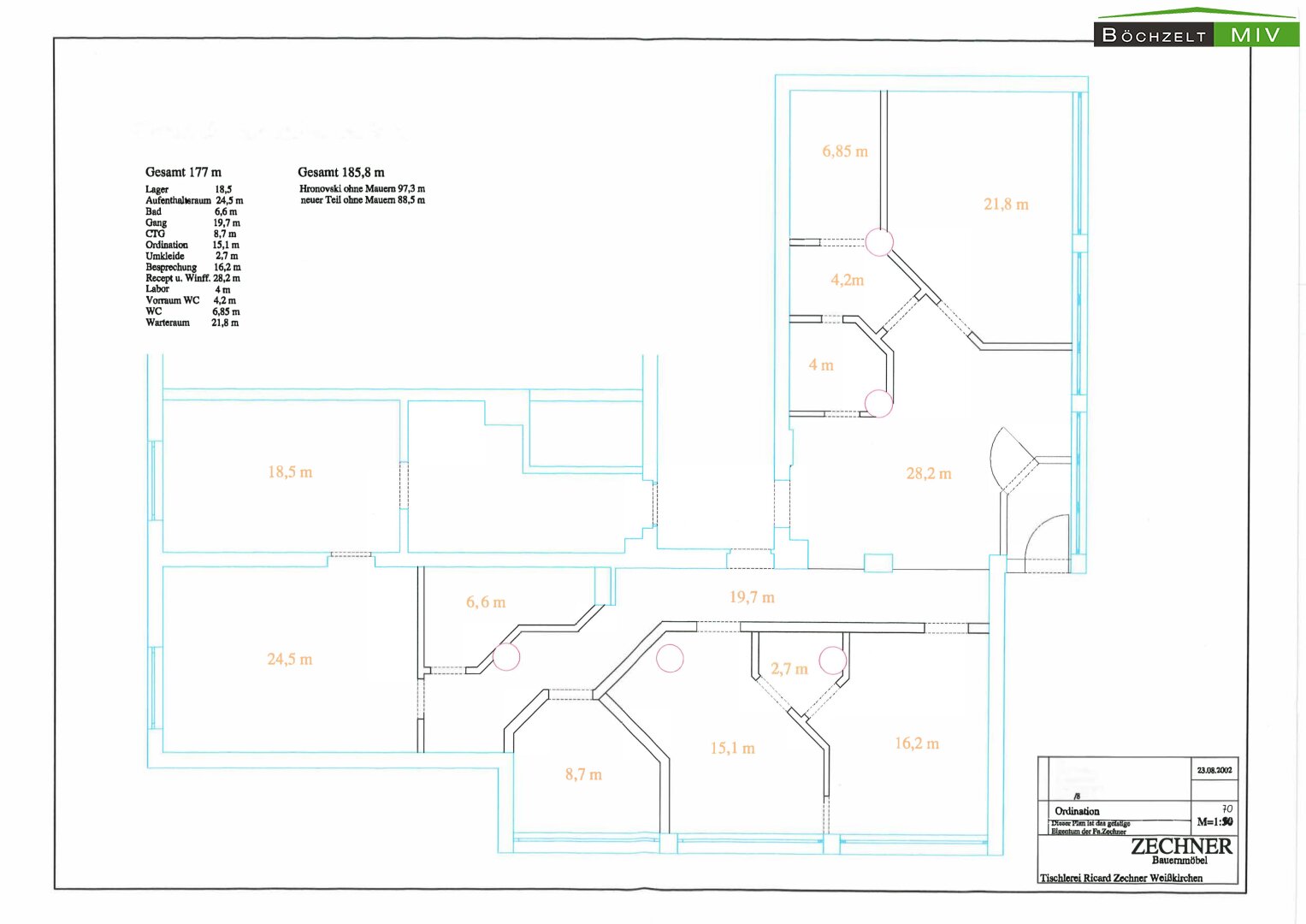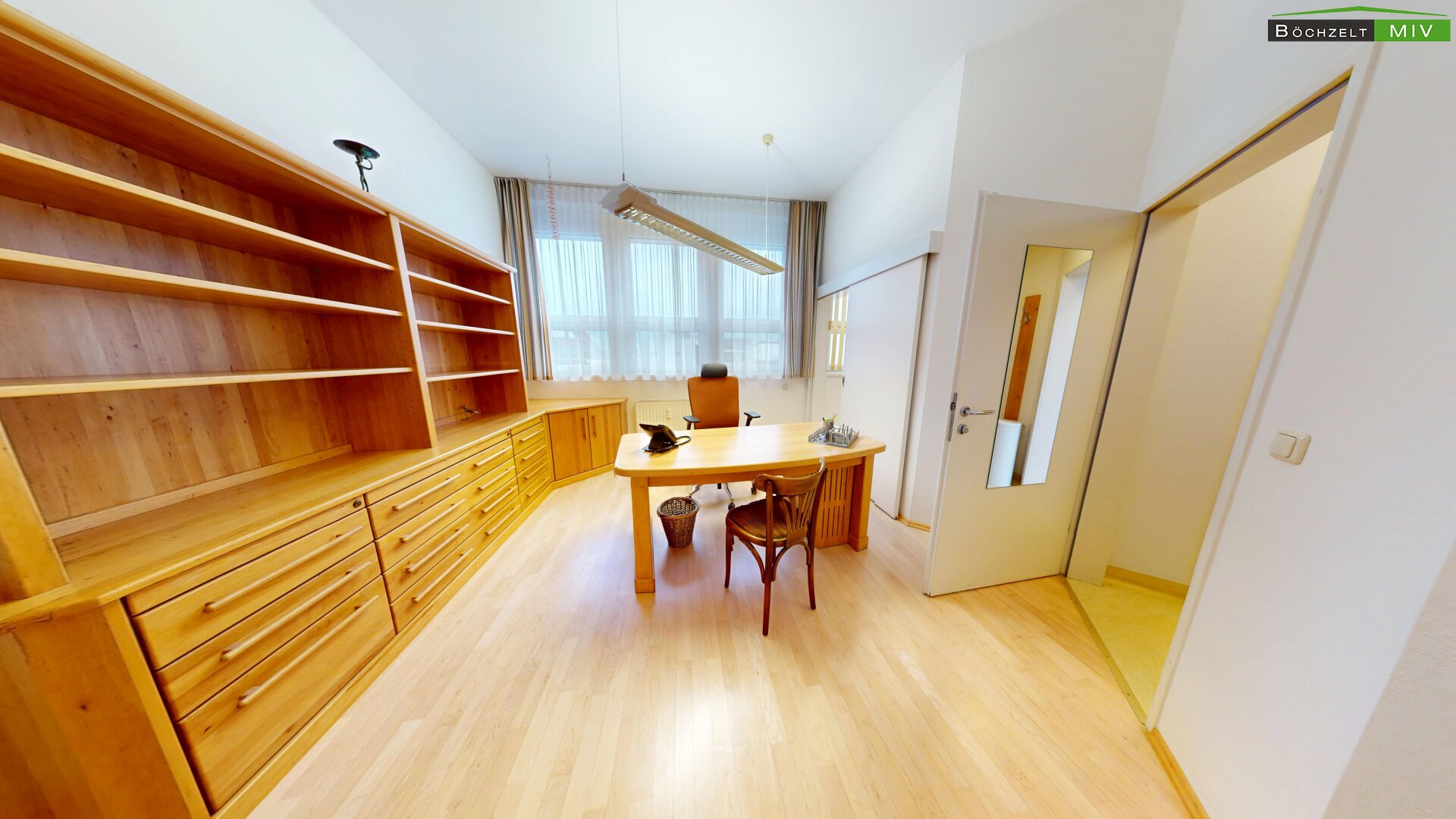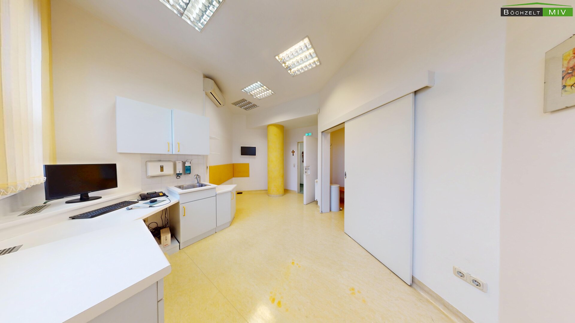 - Empfang, Wartebereich, 3 Büros, 2 WC bzw. Bad, Lagerräume und Aufenthaltsraum