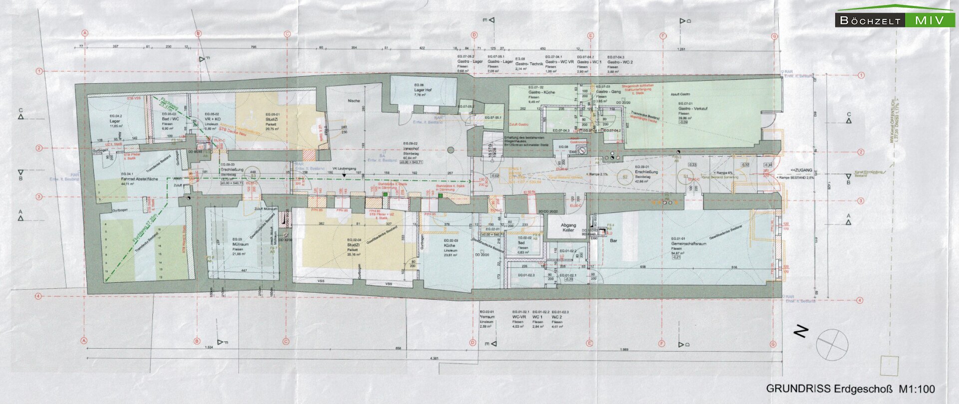 Die Liegenschaft wurde bereits entkernt, es sind derzeit keine Wärme-, Wasser- und Elektrizitätsversorgungsanlagen vorhanden (Ausnahme vermietetes Gastrolokal). Ein Gasanschluss im Objekt ist vorhanden. Auch andere Heizungsalternativen wie z. B. Fernwärme oder eine Pelletsheizung wären denkbar, die Fernwärmeleitung liegt in der Straße. Das Objekt verfügt auch über einen Innenhof, der sich einerseits ideal für Balkon- und Terrassenflächen eignet, überdies aber auch für Fahrradabstellplätze und Begegnungszonen genutzt werden kann. Die bereitgestellten Unterlagen stellen die Einreichplanung für das einsitg geplante Studentenwohnheim dar, wobei auch eine Umplanung auf moderne Wohneinheiten anzudenken ist.