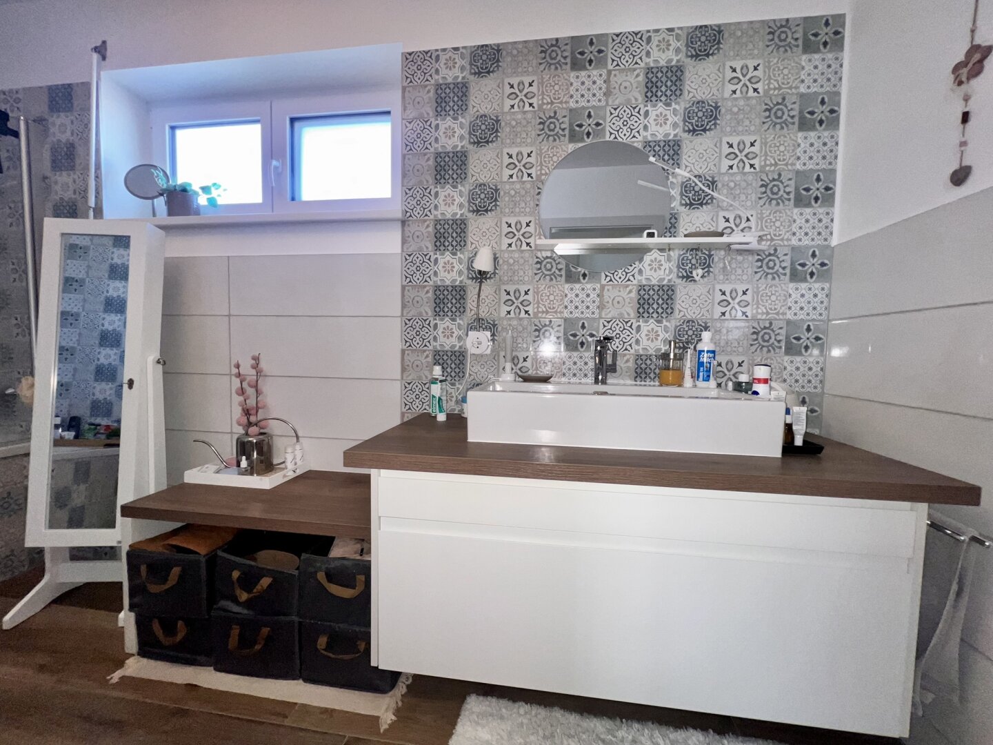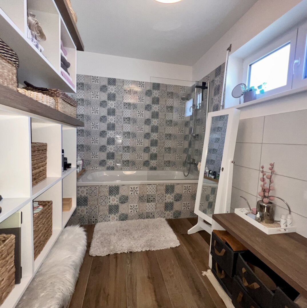 Zwei separat begehbare Zimmer ermöglichen eine flexible Nutzung – ob als Schlafzimmer, Büro oder Kinderzimmer. Das Tageslichtbad mit Badewanne ergänzt das Raumangebot funktional und komfortabel.