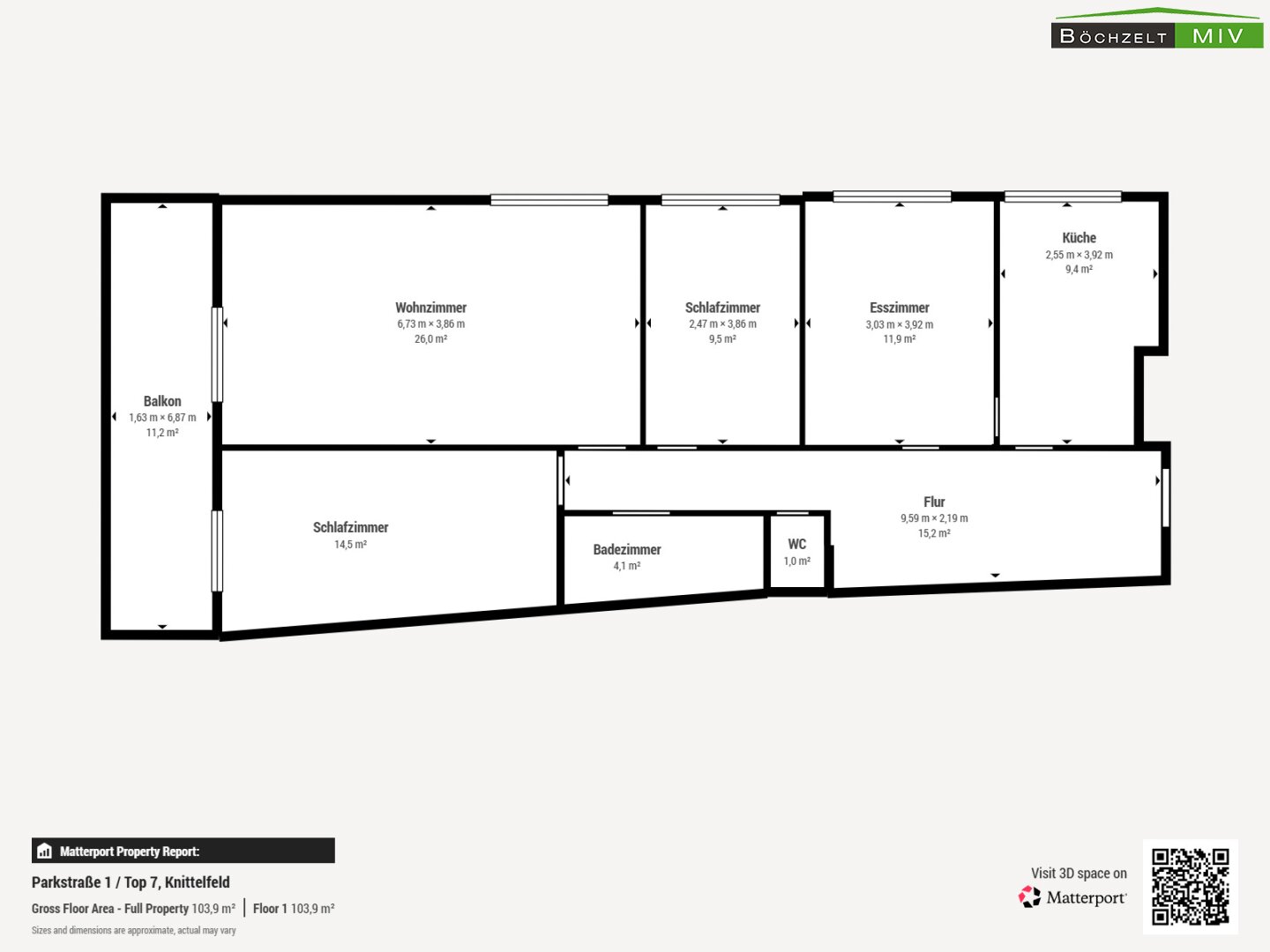 Vom Vorraum aus gelangen Sie in die möblierte Küche mit integriertem Essbereich. Das helle Wohnzimmer verfügt über einen direkten Zugang zum großzügigen Balkon. Auch das Schlafzimmer bietet einen weiteren Ausgang auf den Balkon. Zusätzlich stehen zwei Kinderzimmer, ein praktischer Abstellraum, ein Badezimmer mit Dusche und Badewanne sowie ein separates WC zur Verfügung.