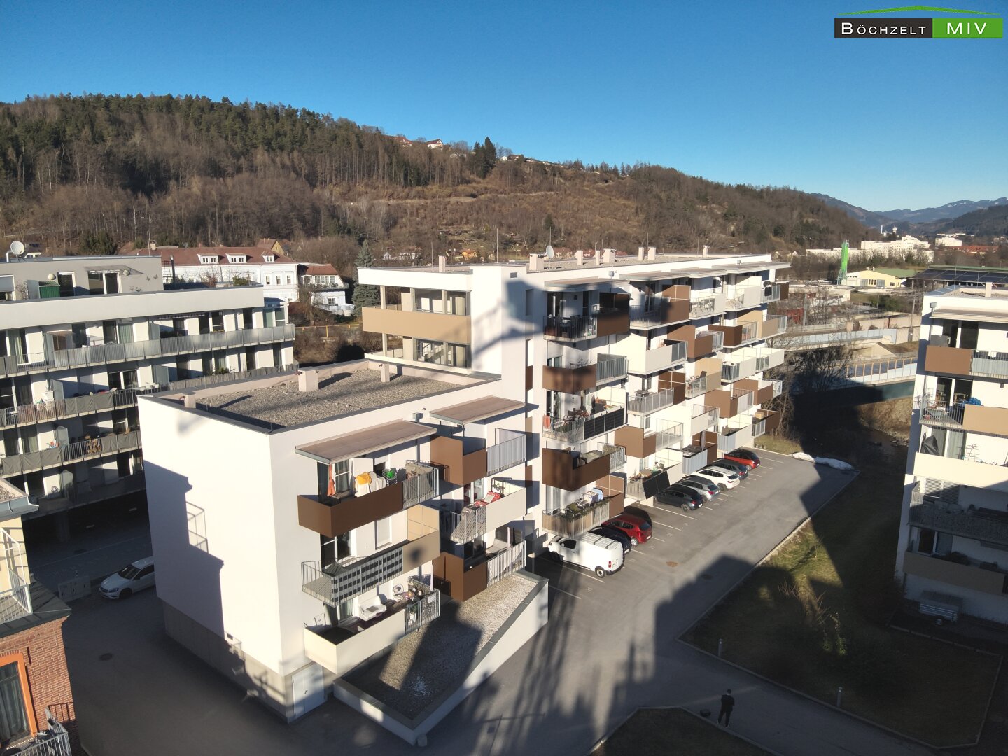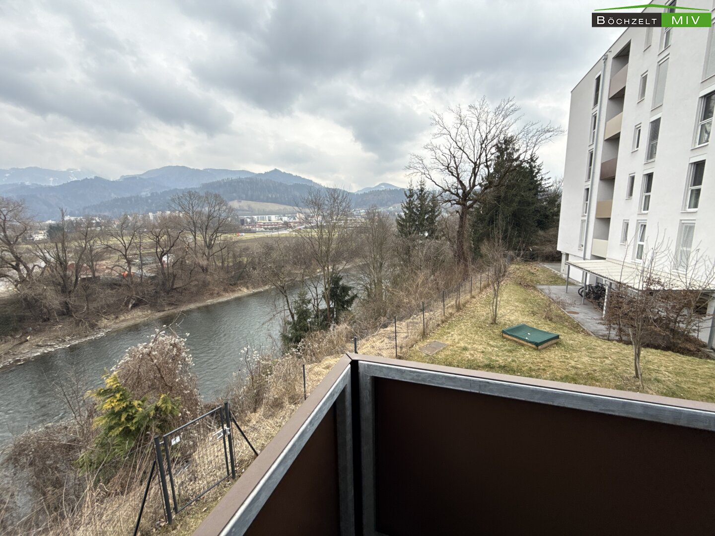 - Zimmer: 3 Zimmer sowie traumhafter Balkon mit Blick auf die Mur
